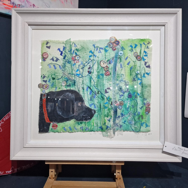 Framed Textiles on calico paintied in acrylic with freehand machine embroisery detail. 75cm x 50cm